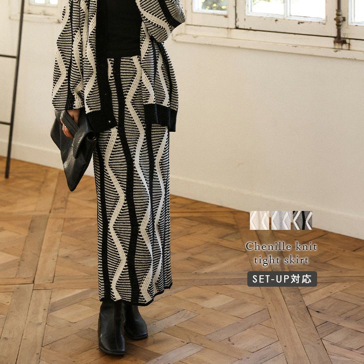ニット タイトスカート ニットスカート セットアップ対応 [AMELY by La-gemme]ニット タイトスカート ニットスカート セットアップ対応 モールニット 幾何学模様 こなれ感 モード ロング丈 ボトムス レディース おすすめ おしゃれ フリーサイズ 2025春夏新作 【abtss24-586】【即納:1-5営業日】【送料無料】宅込