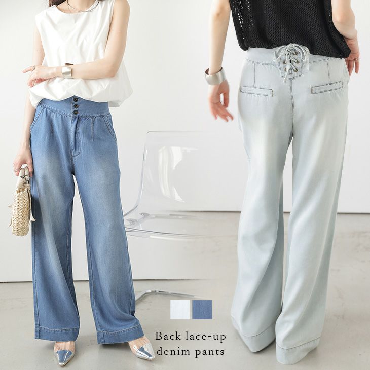 デニム レースアップ カジュアル タック ワイドパンツ 【春夏半額SALE対象】 [AMELY by La-gemme]デニム レースアップ バックデザイン タック ワイドパンツ 脚長 美脚 フェミニン 大人カジュアル レディース メール便 2025春夏新作【abtss25-1296】【即納:1-5営業日】【送料無料】メ込2