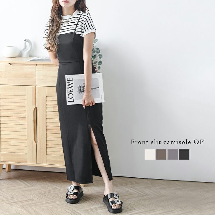 キャミソール ワンピース フロントスリット [AMELY by La-gemme]キャミソール ワンピース フロントスリット レイヤード キャミワンピ 大人かわいい キレイめ トレンド スタイルアップ レディース おすすめ おしゃれ フリーサイズ メール便 2025春夏新作【ada365m】【予約販売:8月1日入荷予定順次発送】メ込2