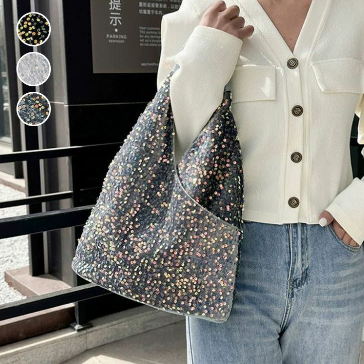 キラキラ ビジュー スパンコール ホーボーバッグ トートバッグ [AMELY by La-gemme]キラキラ ビジュー スパンコール ホーボーバッグ トートバッグ 大人かわいい カジュアル おすすめ おしゃれ レディース トレンド 人気 プチプラ 韓国ファッション 2025春夏新作 【akb312-126】【予約販売:15-20日】【送料無料】80込