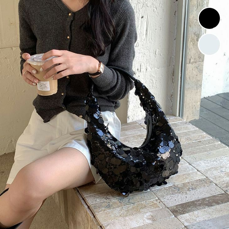 スパンコール キラキラ ムーンクレセント型 [AMELY by La-gemme]スパンコール キラキラ ムーンクレセント型 ショルダーバッグ 大人かわいい カジュアル おすすめ おしゃれ レディース トレンド 人気 プチプラ 韓国ファッション 2025春夏新作 【akb312-132】【予約販売:15-20日】【送料無料】60込
