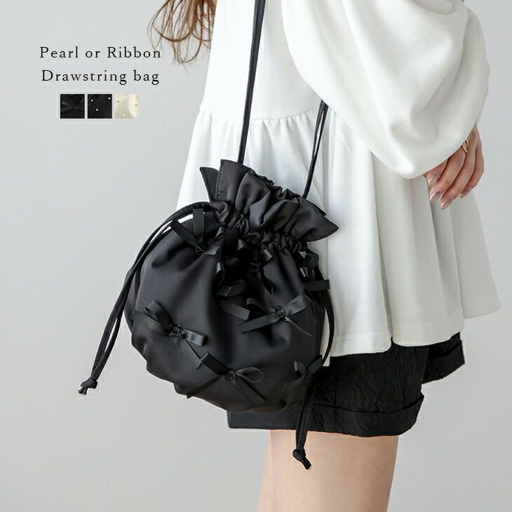 [AMELY by La-gemme]巾着 ショルダーバッグ パール リボン 小物 レディース おすすめ 可愛い デート 大人ガーリー おしゃれ トレンド 韓国ファッション フリーサイズ 2025春夏新作 【akb312-137】【即納:1-5営業日】【送料無料】60込