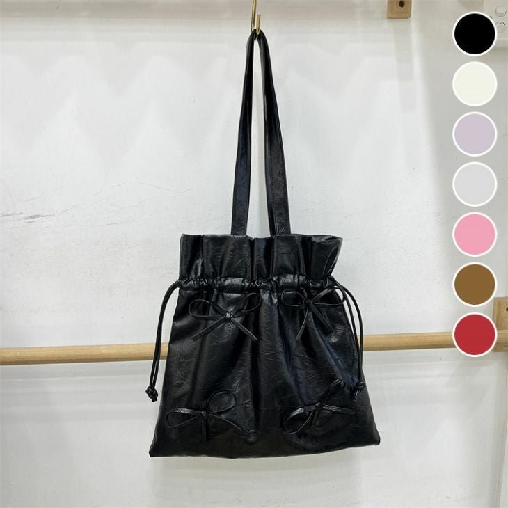 リボン付き 巾着 バッグ ハンドバッグ 手持ち [AMELY by La-gemme]リボン付き 巾着 バッグ ハンドバッグ 手持ち シンプル 無地 カジュアル ガーリー 韓国風 デート おすすめ レディース オシャレ トレンド 人気 プチプラ 韓国ファッション【akb406-590】【予約販売:15-20日】【送料無料】宅込