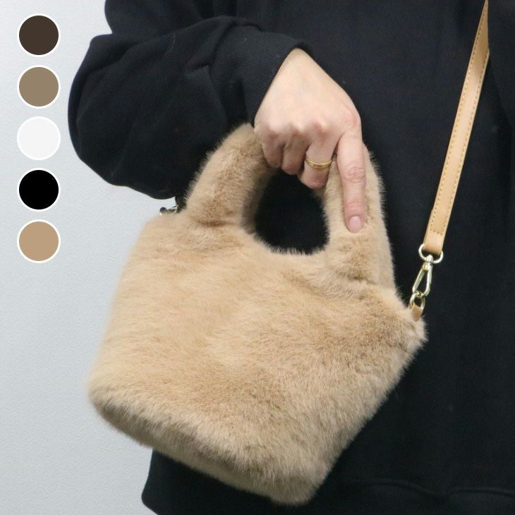 エコファー 2way トートバッグ ショルダー付き バッグ [AMELY by La-gemme]エコファー 2way トートバッグ ショルダー付き バッグ ミニショルダー もこもこ ふわふわ 鞄 春夏 おすすめ レディース オシャレ トレンド 人気 プチプラ 韓国ファッション 2025春夏新作 【akb409-011】【予約販売:15-20日】【送料無料】宅込