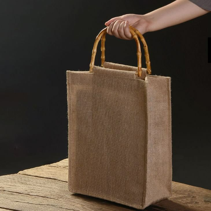 ジュートバッグ バンブーハンドル トートバッグ バンブーハンドルジュートバッグ ジュートバッグ バンブーハンドル ハンドバッグ トートバッグ 大容量 A4 バッグ シンプル 無地 トレンド 夏 ジュート 【ali-08】【予約販売:15-20日】【送料無料】宅込