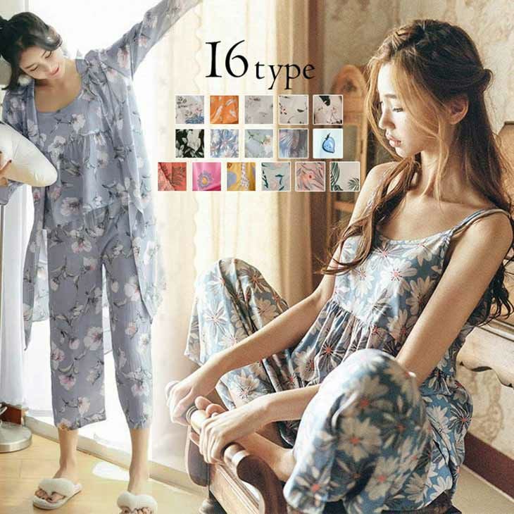 [AMELY by La-gemme]ルームウエア 花柄ルームウエア ナイトウエア [AMELY by La-gemme]ルームウエア 花柄ルームウエア ナイトウエア パジャマ フラワー柄 花柄 リラックスウエア セットアップ セットアイテム 3点セット カーディガン キャミソール パンツ 部屋着【am-0413】【即納:1-5営業日】【送料無料】メ込2