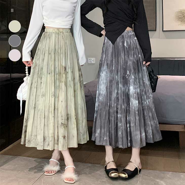 スカート プリーツ シフォン ミモレ丈 Aライン [AMELY by La-gemme]スカート プリーツ シフォン ミモレ丈 Aライン タイダイ柄 ロング お洒落 マキシ 可愛い 春 おすすめ レディース オシャレ トレンド 人気 プチプラ 韓国ファッション【1056-gt】【予約販売:15-20日】【送料無料】メ込2