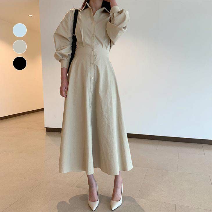 ワンピース スカート ロング丈 楽ちん シャツワンピ [AMELY by La-gemme]ワンピース スカート ロング丈 楽ちん シャツワンピ カジュアル シンプル 無地 オフィス きれいめ おすすめ レディース オシャレ トレンド 人気 プチプラ 韓国ファッション 【2328-fx】【予約販売:15-20日】【送料無料】メ込4
