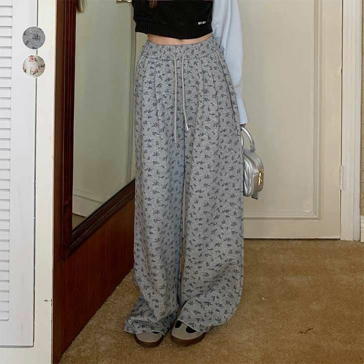 ボトムス スウェット ワイド オーバーサイズ カジュアル [AMELY by La-gemme]ボトムス スウェット ワイド オーバーサイズ カジュアル 楽ちん 長ズボン パンツ 花柄 体型カバー おすすめ レディース オシャレ トレンド 人気 プチプラ 韓国ファッション【2975-fx】【予約販売:15-20日】【送料無料】メ込3