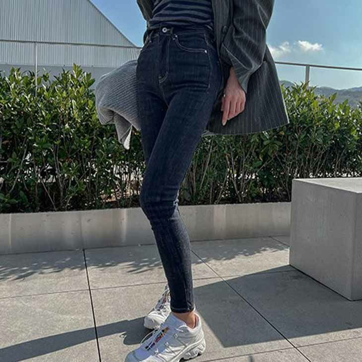 [AMELY by La-gemme]ボトムス デニム ハイウエスト [AMELY by La-gemme]ボトムス デニム ハイウエスト スキニーデニム ジーンズ 美脚 細見え スリム バックボタン レディース 可愛い カジュアル ガーリー ベーシック おすすめ プチプラ 韓国ファッション 【abt302-064】【予約販売:15-20日】【送料無料】メ込4