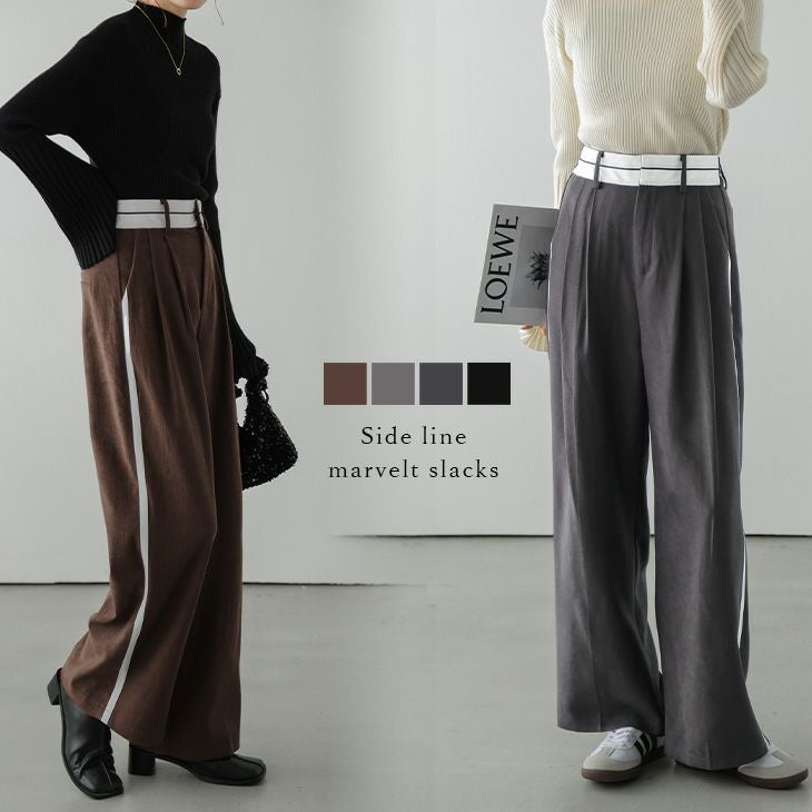 スラックス パンツ ワイド サイドライン マーベルト [AMELY by La-gemme]スラックス パンツ ワイド サイドライン マーベルト スポーティー モード 脚長 美脚 ボトムス レディース おすすめ おしゃれ ブラック メール便 2025春夏新作 【abt304-495】【即納:1-5営業日】【送料無料】メ込4