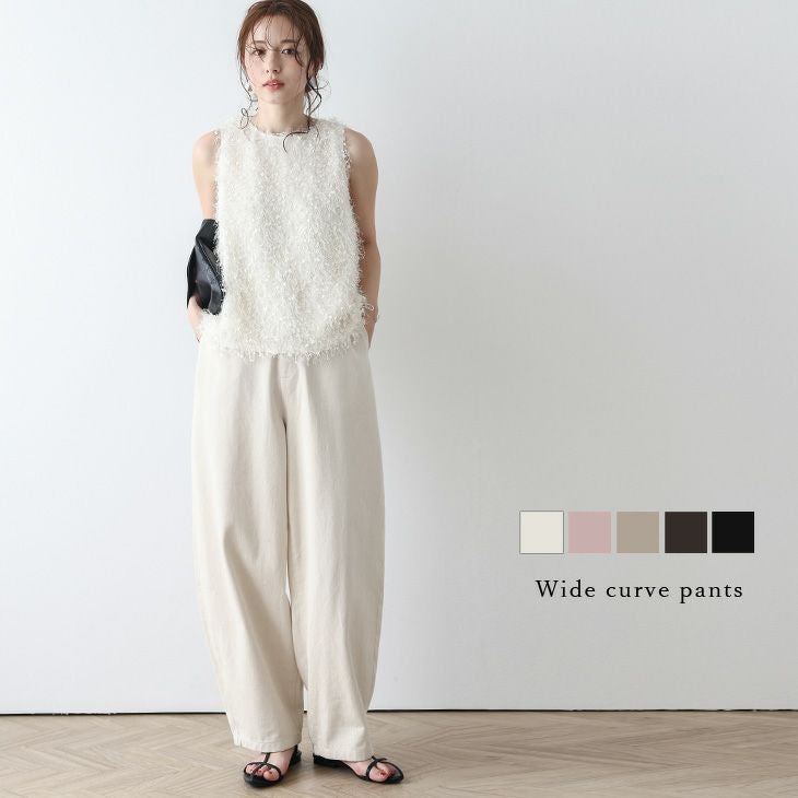 カーブパンツ ワイド ゆったり ハイウエスト 脚長効果 [AMELY by La-gemme]カーブパンツ ワイド ゆったり ハイウエスト 脚長効果 体型カバー 大人カジュアル キレイめ トレンド ボトムス レディース おすすめ おしゃれメール便 2025春夏【abt305-508】【即納:1-5営業日】【送料無料】メ込2