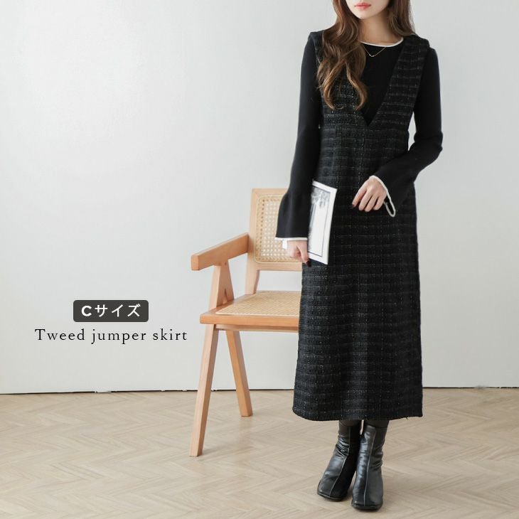 ツイード ジャンパースカート ワンピース ラメ Vネック [AMELY by La-gemme]ツイード ジャンパースカート ワンピース ラメ Vネック バックスリット ジャンスカ レディース おすすめ おしゃれ 2025春夏新作 【abt307-517-c】【即納:1-5営業日】【送料無料】宅込