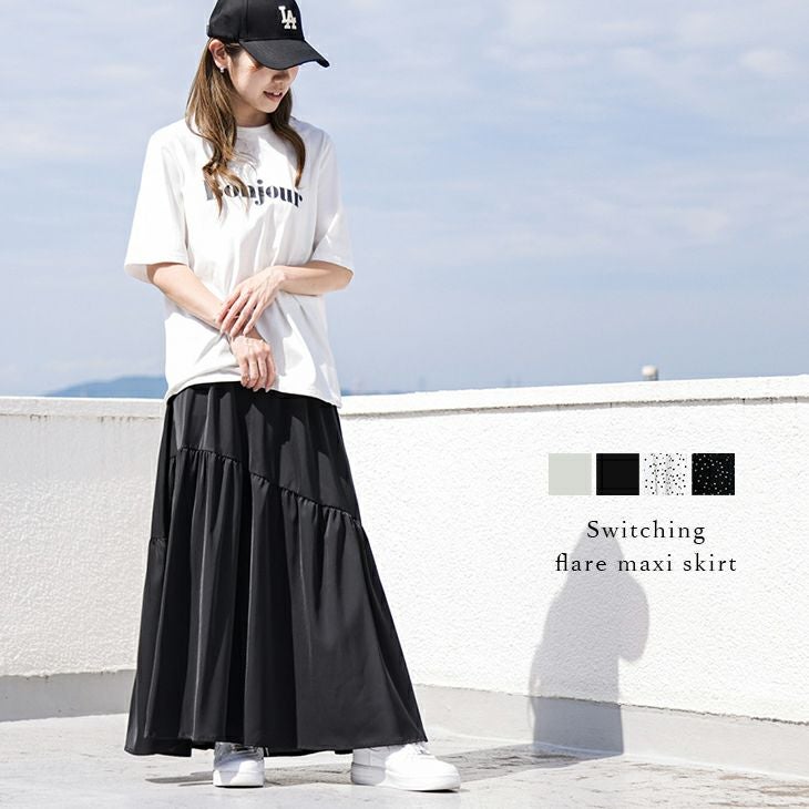 フレアスカート マキシ丈 ボトムス アシンメトリー 高見え [AMELY by La-gemme]フレアスカート マキシ丈 ボトムス アシンメトリー 高見え ウエストゴム レディース 接触冷感 おしゃれ ブラック フリーサイズ メール便 2025秋新作【ask210-355】【即納:1-5営業日】【送料無料】ユ込3