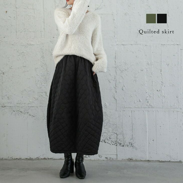 [AMELY by La-gemme]キルティングスカート コクーンスカートコクーンシルエット ウエストゴム 【秋冬半額SALE対象】 [AMELY by La-gemme]キルティングスカート コクーンスカートコクーンシルエット ウエストゴム 体型カバー レディース おすすめ おしゃれ ブラック 2025春夏新作 【ask303-346】【即納:1-5営業日】【送料無料】80込