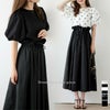[AMELY by La-gemme]ドッキングワンピース ボリューム袖 ブラウス [AMELY by La-gemme]ドッキングワンピース ボリューム袖 ブラウス フレアスカート Aライン ドロスト 半袖 レディース おしゃれ ブラック メール便 2025春夏新作 【awp305-592】【rp】【即納:1-5営業日】【送料無料】メ込2
