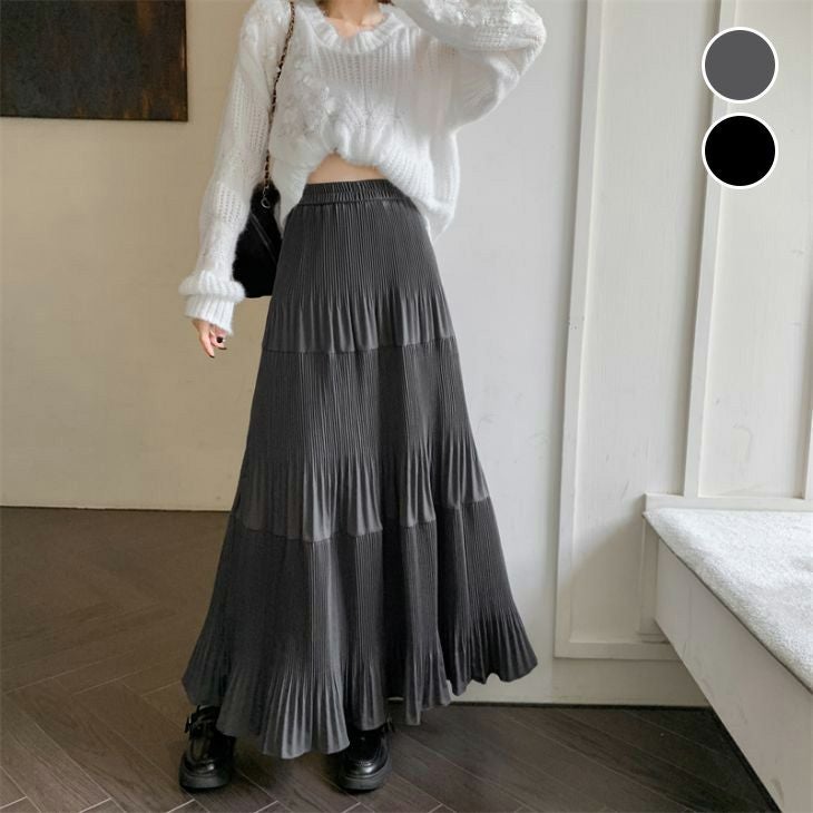 スカート ボトムス ベロア プリーツ ティアード [AMELY by La-gemme]スカート ボトムス ベロア プリーツ ティアード ロングスカート Aライン 無地 きれいめ 上品 お出かけ トレンド プチプラ 韓国ファッション【lsskss24-218】【予約販売:15-20日入荷予定順次発送】【送料無料】メ込1