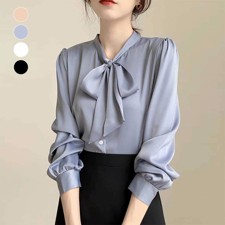 [AMELY by La-gemme]長袖 シャツ リボン オフィスカジュアル シンプル 上品 エレガント 通勤 春 春夏 トップス ブラウス おすすめ レディース オシャレ トレンド 人気 プチプラ 韓国ファッション 【7928-nc】【即納&予約:(1)即納/(2)3月12日入荷予定順次発送】【送料無料】メ込2
