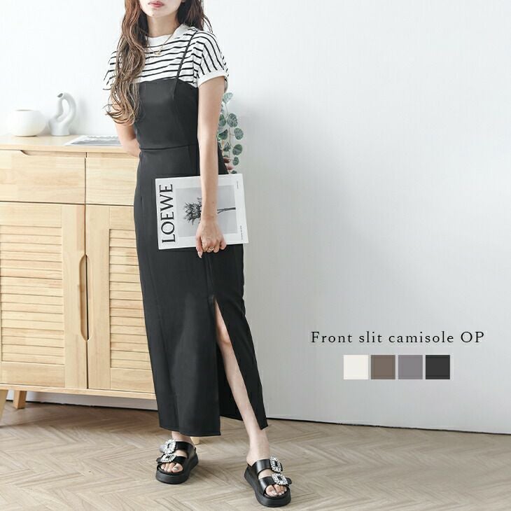 キャミソール ワンピース フロントスリット レイヤード [AMELY by La-gemme]キャミソール ワンピース フロントスリット レイヤード キャミワンピ 大人かわいい キレイめ トレンド スタイルアップ レディース おすすめ おしゃれ フリーサイズ メール便 2025春夏新作【aop406-365】【即納:1-5営業日】【送料無料】メ込2