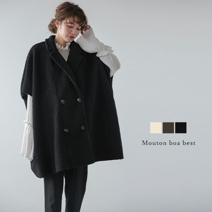 ボアコート エコムートン ポンチョ オーバーサイズ 【秋冬半額SALE対象】 [AMELY by La-gemme]ボアコート エコムートン ポンチョ オーバーサイズ ベスト アウター 大人可愛い レディース おすすめ おしゃれ フリーサイズ 2025春夏新作 【aot301-812】【即納:1-5営業日】【送料無料】宅込