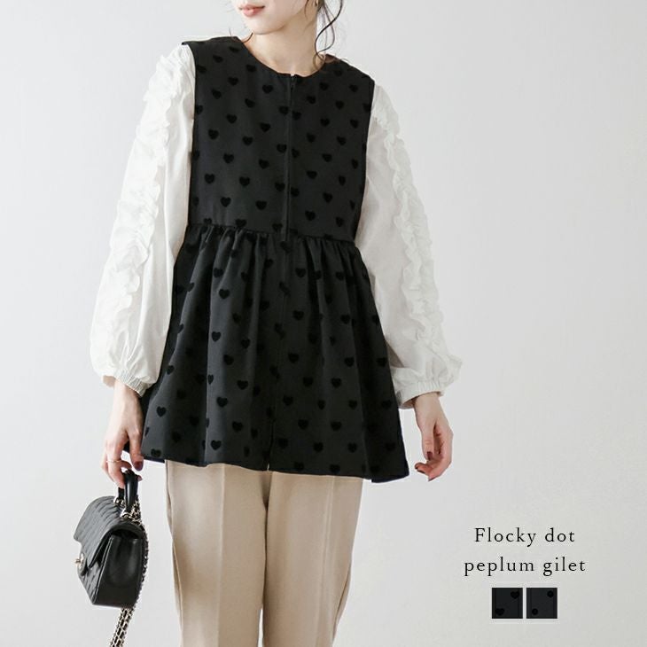 ペプラムジレ ベスト ハート ドット レイヤード [AMELY by La-gemme]ペプラムジレ ベスト ハート フロッキードット レイヤード 大人可愛い キレイめ トップス アウター レディース おすすめ おしゃれ フリーサイズ メール便 2025春夏新作【aot304-722】【即納:1-5営業日】【送料無料】メ込2