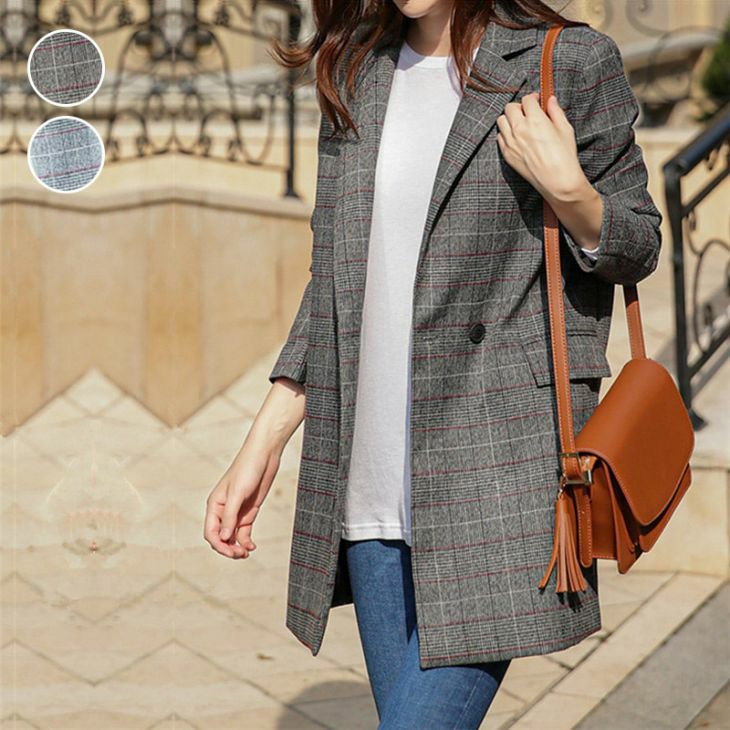 テーラードジャケット チェック柄 ミドル丈 大人カジュアル [AMELY by La-gemme]テーラードジャケット チェック柄 ミドル丈 大人カジュアル キレイめ シンプル モード通勤 おすすめ レディース トレンド オシャレ 人気 プチプラ 韓国ファッション 2025春夏新作 【aot308-022】【予約販売:15-20日】【送料無料】宅込