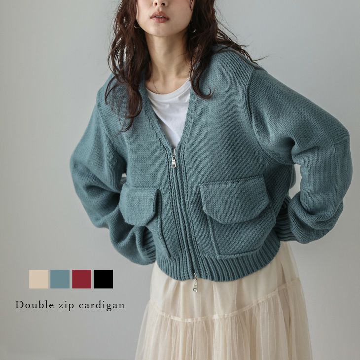 ニットカーディガン ダブルジップ 厚手 ジャケットライク [AMELY by La-gemme]ニットカーディガン ダブルジップ 厚手 ジャケットライク 羽織り トレンド ポケット トップス レディース おすすめ おしゃれ フリーサイズ 2025春夏新作 【aotaw24-693】【即納:1-5営業日】【送料無料】宅込