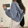 ジップアップ ショート丈 ニット パーカー フーディー [AMELY by La-gemme]ジップアップ ショート丈 ニット パーカー フーディー ショート シンプル 無地 カジュアル アウター 春夏 おすすめ レディース オシャレ トレンド 人気 プチプラ 韓国ファッション 【aotaw24-726】【即納:1-5営業日】【送料無料】宅込