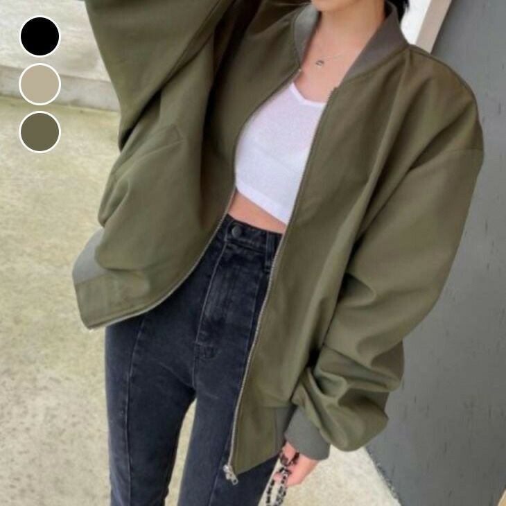 MA1風 オーバーサイズ ジャケット アウター シンプル [AMELY by La-gemme]MA1風 オーバーサイズ ジャケット アウター シンプル 無地 ジップアップ カジュアル ボリューム 春夏 おすすめ レディース オシャレ トレンド 人気 プチプラ 韓国ファッション【aotaw24-732】【予約販売:15-20日】【送料無料】メ込2