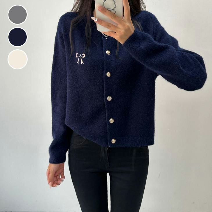 リボン刺繍 ニット カーディガン カーデ シンプル [AMELY by La-gemme]リボン刺繍 ニット カーディガン カーデ シンプル 無地 ガーリー 羽織り トップス 女子会 デート 春夏 おすすめ レディース オシャレ トレンド 人気 プチプラ 韓国ファッション【aotaw24-739】【予約販売:15-20日】【送料無料】宅込