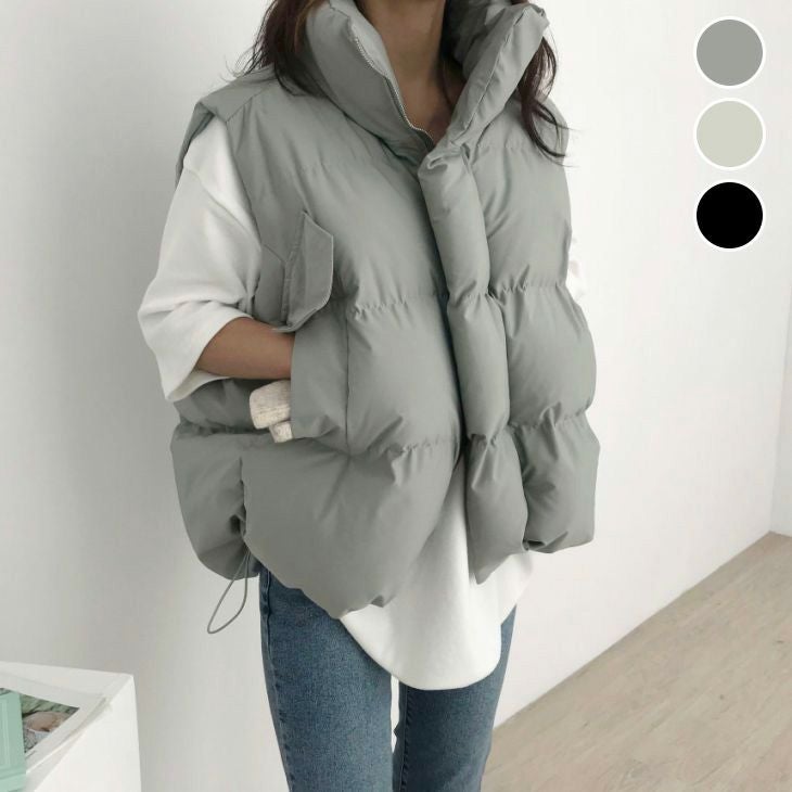 ドロスト ハイネック ダウン ベスト 中綿 [AMELY by La-gemme]ドロスト ハイネック ダウン ベスト 中綿 シンプル 無地 カジュアル きれいめ アウター 女子会 春夏 おすすめ レディース オシャレ トレンド 人気 プチプラ 韓国ファッション 【aotaw24-740】【予約販売:15-20日】【送料無料】宅込