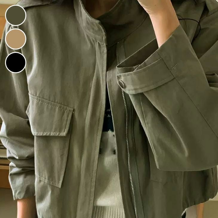 スタンドカラー ミリタリー ショート コート ドロスト [AMELY by La-gemme]スタンドカラー ミリタリー ショート コート ドロスト シンプル 無地 カジュアル ジャケット 春夏 おすすめ レディース オシャレ トレンド 人気 プチプラ 韓国ファッション 【aotaw24-742】【予約販売:15-20日】【送料無料】宅込