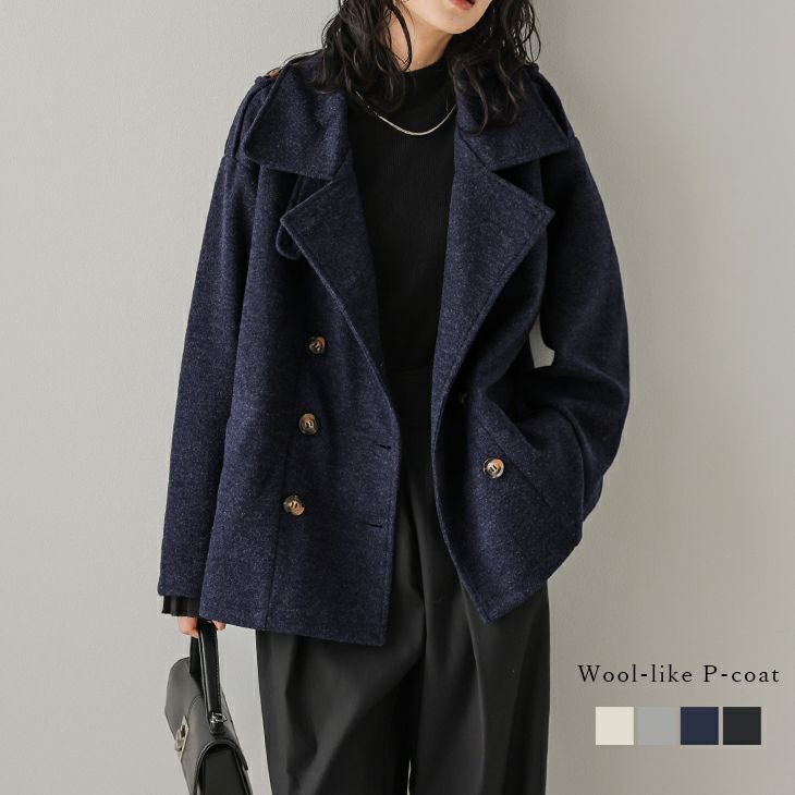 Pコート ミドル丈 スタンドカラー ドロップショルダー アウター 【秋冬半額SALE対象】 [AMELY by La-gemme]Pコート ミドル丈 スタンドカラー ドロップショルダー アウター ウールライク キレイめ 大人カジュアル大人カジュアル 通勤 デート レディース おしゃれ フリーサイズ 2025春夏新作【aotaw24-775】【即納:1-5営業日】【送料無料】宅込