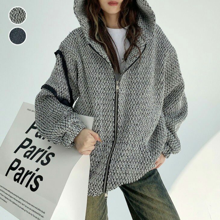 アウター ダブルジップ ツイード パーカー オーバーサイズ [AMELY by La-gemme]アウター ダブルジップ ツイード パーカー オーバーサイズ カジュアル 体型カバー レディース おすすめ おしゃれ 2025春夏新作 【aotaw24-829】【即納:1-5営業日】【送料無料】宅込