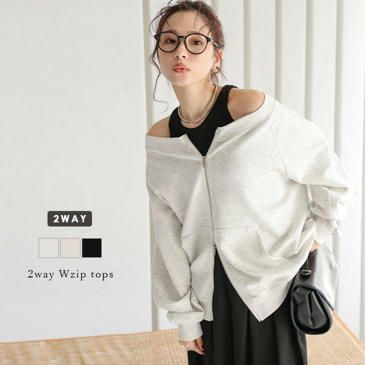 トップス オフショル Wジップ 2way 着回し [AMELY by La-gemme]トップス オフショル Wジップ 2way 着回し モード カジュアル 長袖 レディース おすすめ おしゃれ フリーサイズ 2025春夏新作 【aotss25-991】【即納:1-5営業日】【送料無料】60込