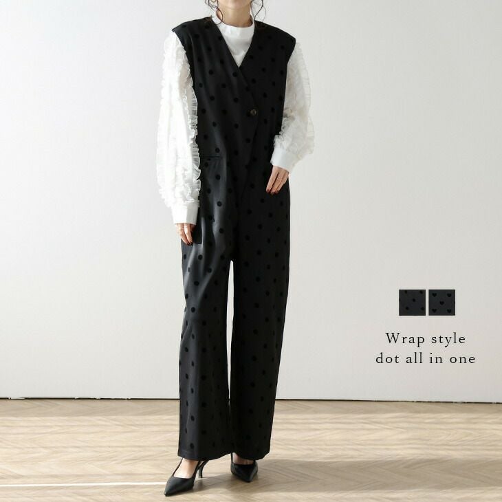 オールインワン サロペット ドット ラップ風 Iライン [AMELY by La-gemme]オールインワン サロペット ドット ラップ風 Iライン 楽ちん ラフ レイヤード 大人可愛い メール便 2025春夏新作 【ase304-516】【即納:1-5営業日】【送料無料】メ込2