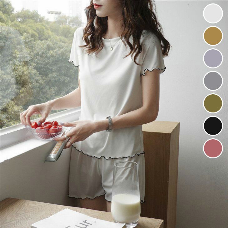 メローリブセットアップ さらてろ 涼感 ルームウェア 楽ちん [AMELY by La-gemme]メローリブセットアップ さらてろ 涼感 ルームウェア 楽ちん リブ セットアップ フリル ショーツ ウエストゴム 上下セットい 2025春夏新作 【ase404-180】【予約販売:15-20日】【送料無料】メ込2