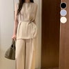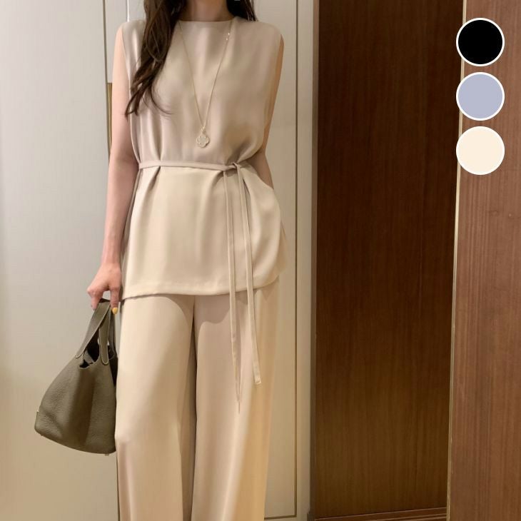 セットアップ ワイドパンツ タンクトップ ノースリーブ [AMELY by La-gemme]セットアップ ワイドパンツ タンクトップ ノースリーブ ロング丈 ブラウス ロングパンツ トップス 2点セット 夏 春 秋 カジュアル 2025春夏新作 【ase406-205】【予約販売:15-20日】【送料無料】メ込2