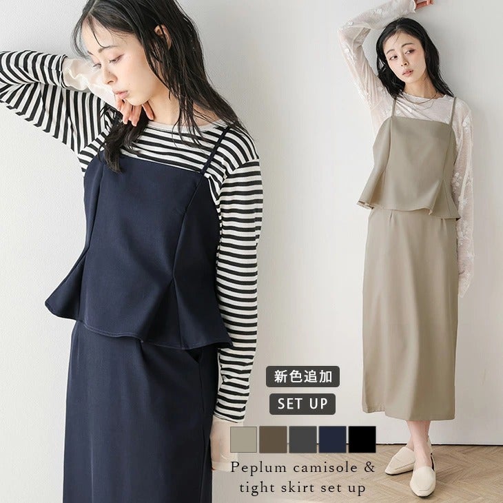 セットアップ ペプラム フレア キャミ タイトスカート 【秋冬半額SALE対象】 [AMELY by La-gemme]セットアップ ペプラム フレア キャミ タイトスカート レイヤード 重ね着 大人かわいい キレイめ 2ピース オフィス レディース おすすめ おしゃれ メール便 2025秋冬新作【aseaw25-1628】【即納&予約:4月2日入荷予定順次発送】【送料無料】メ込2
