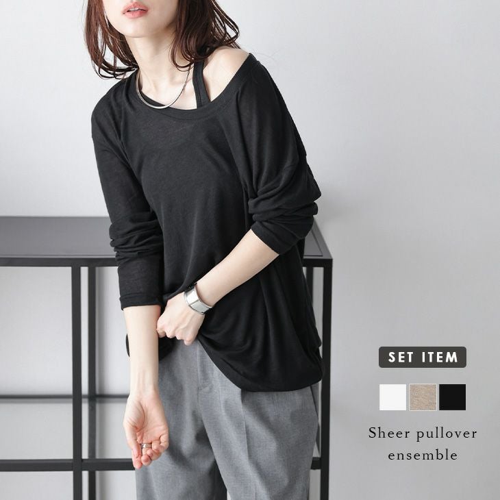 アンサンブル アメスリタンクトップ シアーロンT プルオーバー [AMELY by La-gemme]アンサンブル アメスリタンクトップ シアーロンT プルオーバー 長袖 レイヤード セットアイテム レディース おすすめ おしゃれ フリーサイズ 2025春夏新作 【ases25-1193】【予約販売:15-20日】【送料無料】メ込2