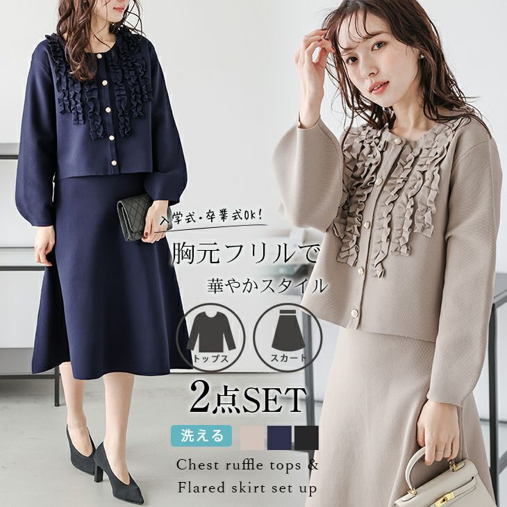 セットアップ オケージョン 入学式 卒業式 胸元フリル 【春夏半額SALE対象】 [AMELY by La-gemme]セットアップ オケージョン 入学式 卒業式 胸元フリル フレアスカート パールボタン ミディ丈 2点セット レディース おすすめ おしゃれ フリーサイズ 2025春夏新作 【asess25-1054】【即納:1-5営業日】【送料無料】宅込