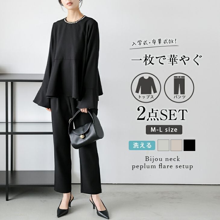 セットアップ ビジュー フレアシルエット ペプラム テーパード 【春夏半額SALE対象】 [AMELY by La-gemme]セットアップ ビジュー フレアシルエット ペプラム テーパード 華やか 上品 入学式 卒業式 セレモニー レディース おすすめ おしゃれ 2025春夏新作 【asess25-1100】【即納:1-5営業日】【送料無料】宅込
