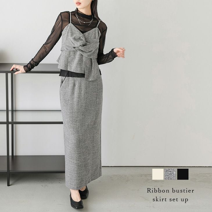 セットアップ リボンキャミ ナロースカート バックギャザー [AMELY by La-gemme]セットアップ リボンキャミ ナロースカート バックギャザー アシンメトリー ツイード調 オケージョン レディース おすすめ おしゃれ 2025春夏新作 【asess25-992】【即納:1-5営業日】【送料無料】宅込