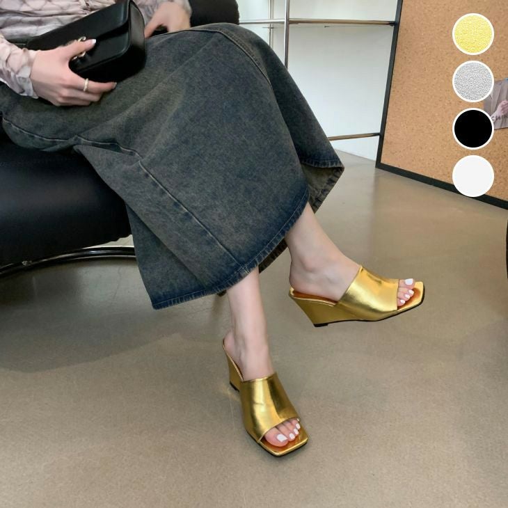 サンダル ウェッジソール 厚底 スクエアトゥ キレイめ