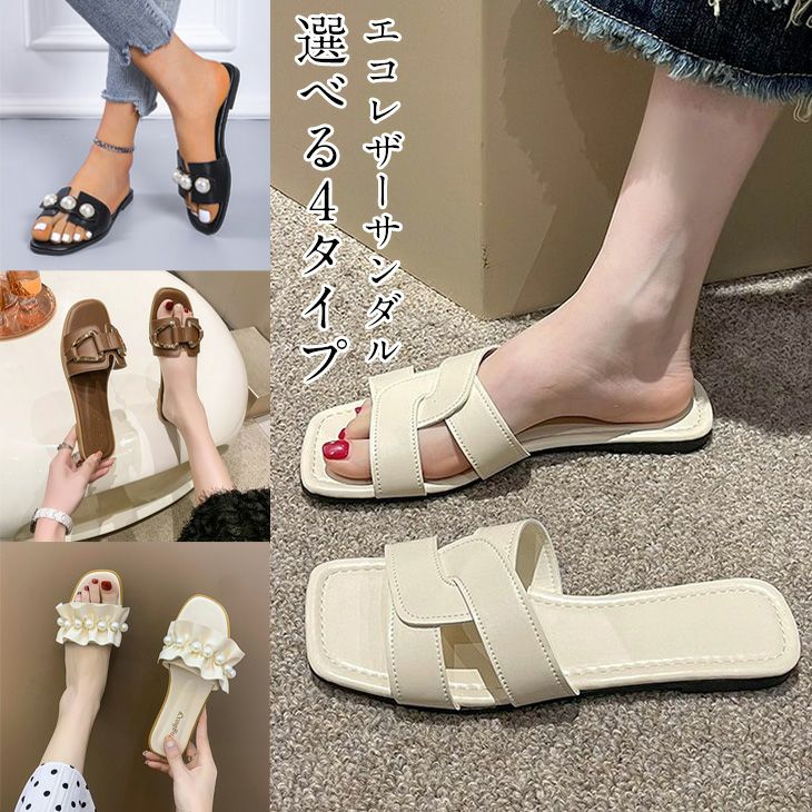 スクエアトゥ フラット ミュール サンダル 4type [AMELY by La-gemme]スクエアトゥ フラット ミュール サンダル 4type ビット パール フリル ぺたんこ きれいめ 上品 スリッパ オープントゥ 春 夏 レディース 2025春夏新作 【ash406-570】【予約販売:15-20日】【送料無料】60込