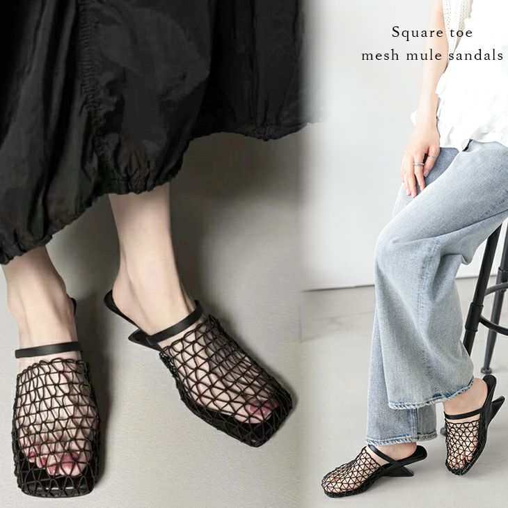 変形 ヒール メッシュ サンダル シンプル [AMELY by La-gemme]変形 ヒール メッシュ サンダル シンプル 編み編み ブラック ミュール フラット 女子会 デート 個性的 おすすめ レディース オシャレ トレンド 人気 プチプラ 韓国ファッション 【ash406-622】【即納:1-5営業日】【送料無料】宅込