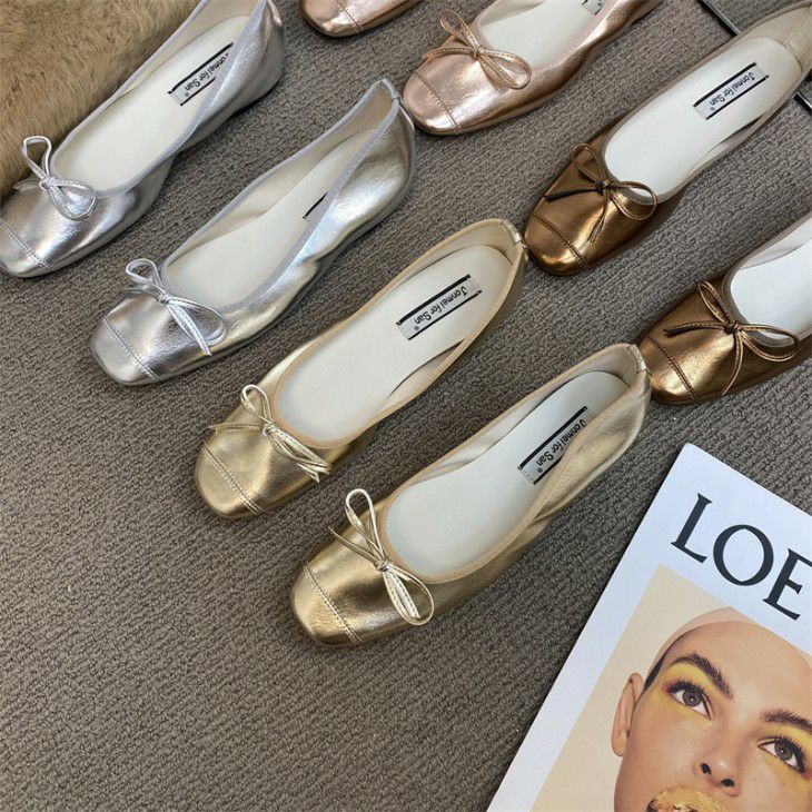 バレエシューズ パンプス メタルカラー フラット 痛くない 【春夏半額SALE対象】 [AMELY by La-gemme]バレエシューズ パンプス メタルカラー フラット 痛くない リボン 楽ちん 靴 シューズ 可愛い カジュアル ガーリー 女子会 シンプル お洒落 レディース 大人 韓国ファッション【ash501-009】【予約販売:15-20日】【送料無料】宅込
