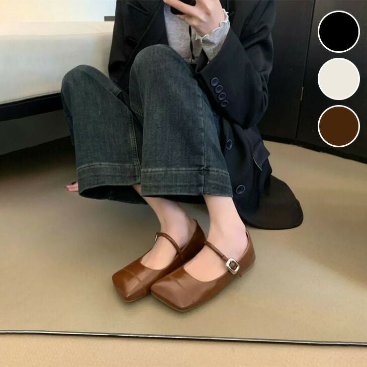 パンプス フラットシューズ ぺたんこ スクエアトゥ シューズ [AMELY by La-gemme]パンプス フラットシューズ ぺたんこ スクエアトゥ シューズ ストラップ 靴 レディース カジュアル 歩きやすい 履きやすい お出かけ トレンド プチプラ 韓国ファッション【ashss24-219】【予約販売:15-20日入荷予定順次発送】【送料無料】60込