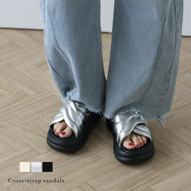 クロスベルト プラットフォーム 厚底サンダル [AMELY by La-gemme]クロスベルト プラットフォーム 厚底サンダル バックストラップ サンダル ミュール スリッパ 履きやすい 痛くない シルバー 海 リゾート ビーチサンダル 韓国ファッション 【ashss24-456】【即納:1-5営業日】【送料無料】宅込