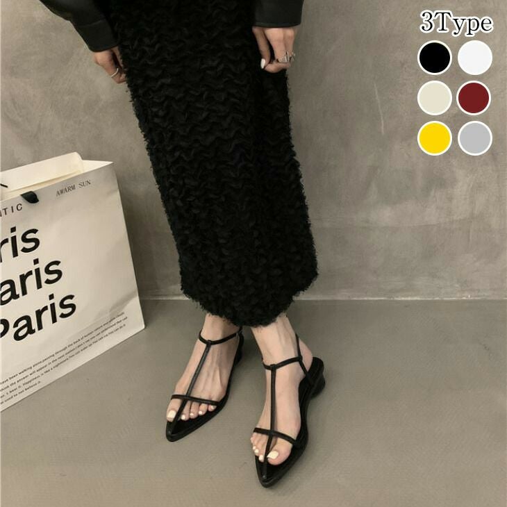 サンダル アンクルストラップ Tストラップサンダル ポインテッド [AMELY by La-gemme]サンダル アンクルストラップ Tストラップサンダル ポインテッドトゥサンダル フラット ローヒール 履きやすい ブラック ホワイト シルバー ゴールド 旅行 リゾート 夏 【ashss24-465】【予約販売:15-20日】【送料無料】宅込